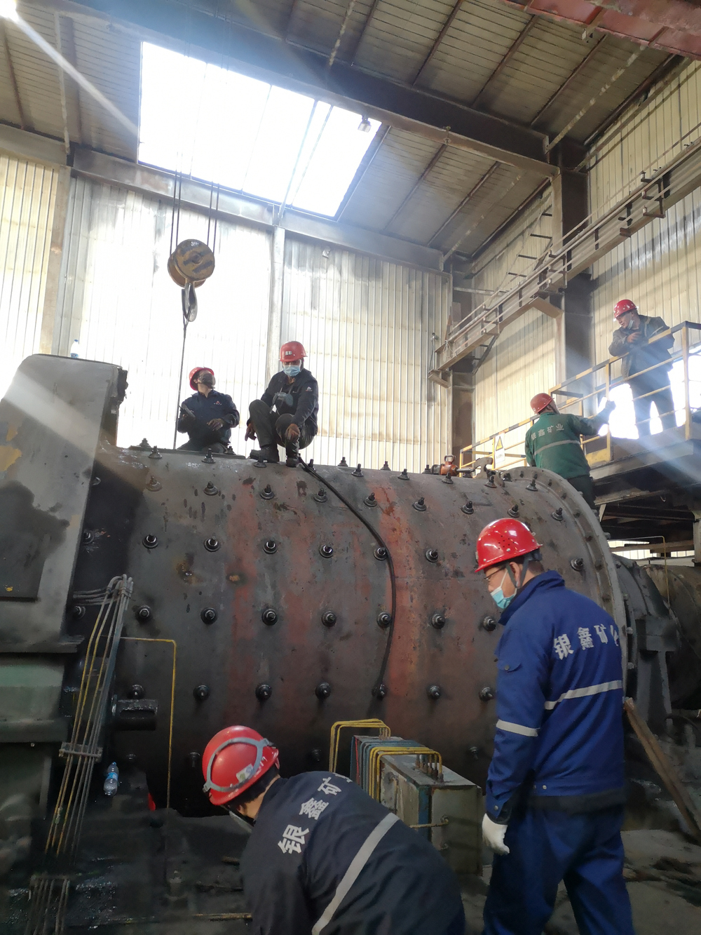 26日上午8時,開始對9號球磨機進行停機倒鋼球作業(yè),相繼開始了一系列的拆裝工作。開始用行車自動模式進行倒鋼球和拆卸作業(yè),隨著裝襯板難度和危險系數(shù)的增大,后期行車采用人工手動模式作業(yè),通過這種倒行車的辦法,大大提高了工作效率,保證了作業(yè)的精準和人員的安全。經(jīng)過65個小時的連續(xù)奮戰(zhàn),9號球磨機于3月1日凌晨1:25開機運轉。
